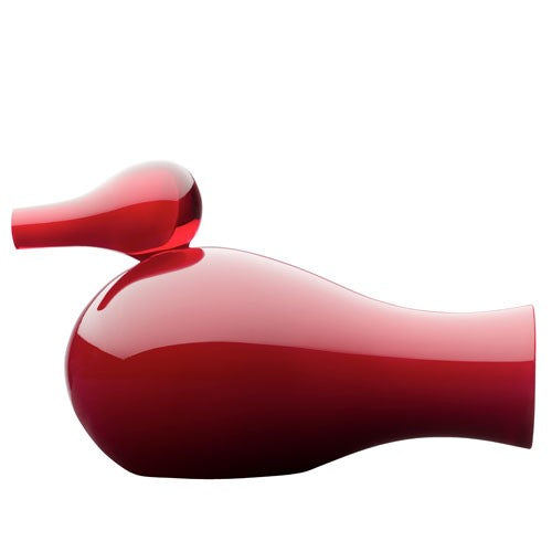 The large Circoli Bird is a piece of fine design and superior craftsmanship. A deep, rich red glass encompasses clear and white glass which is discovered at both the tail and beak of this bird. This glass is interwoven to create a gentle play of light and color. The strength of the birds lies in their primal, elemental drop shape, Vigna explains.